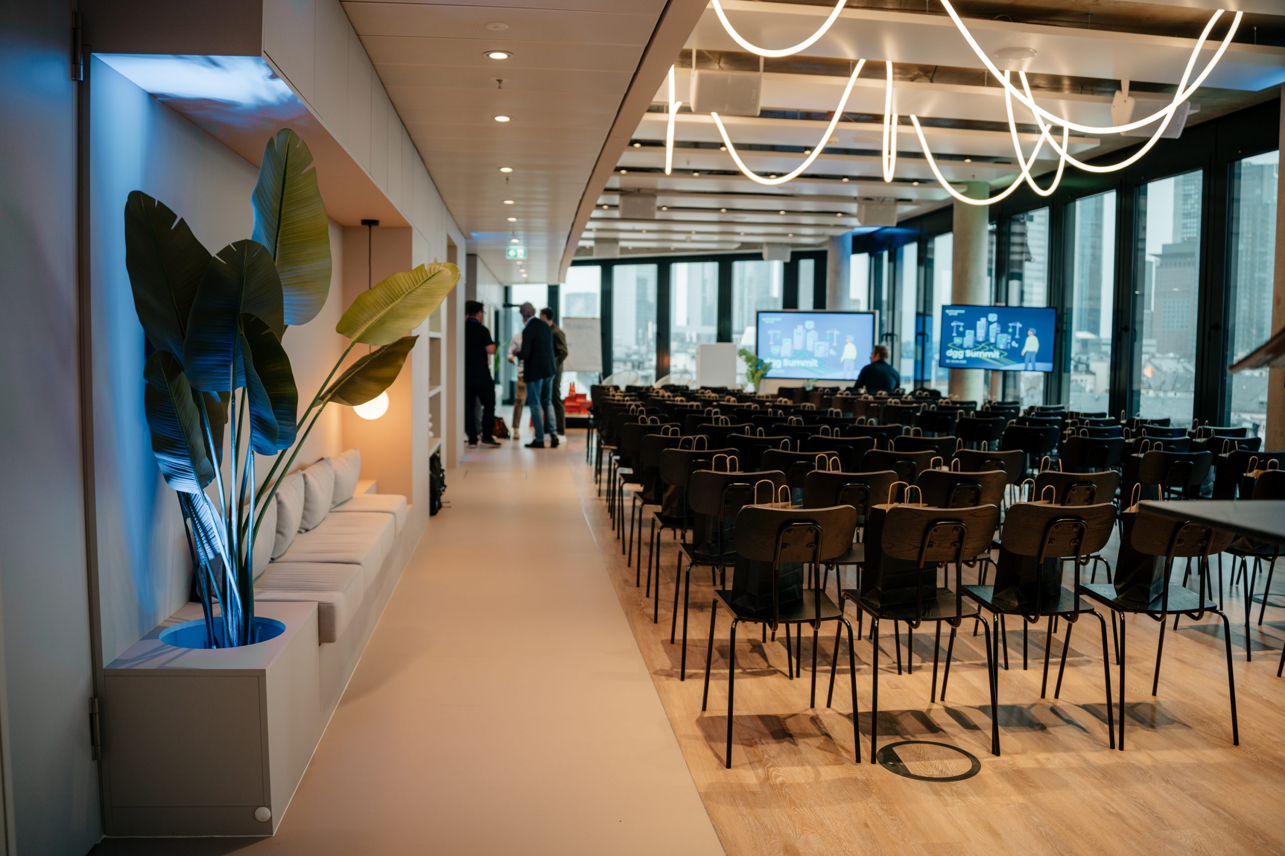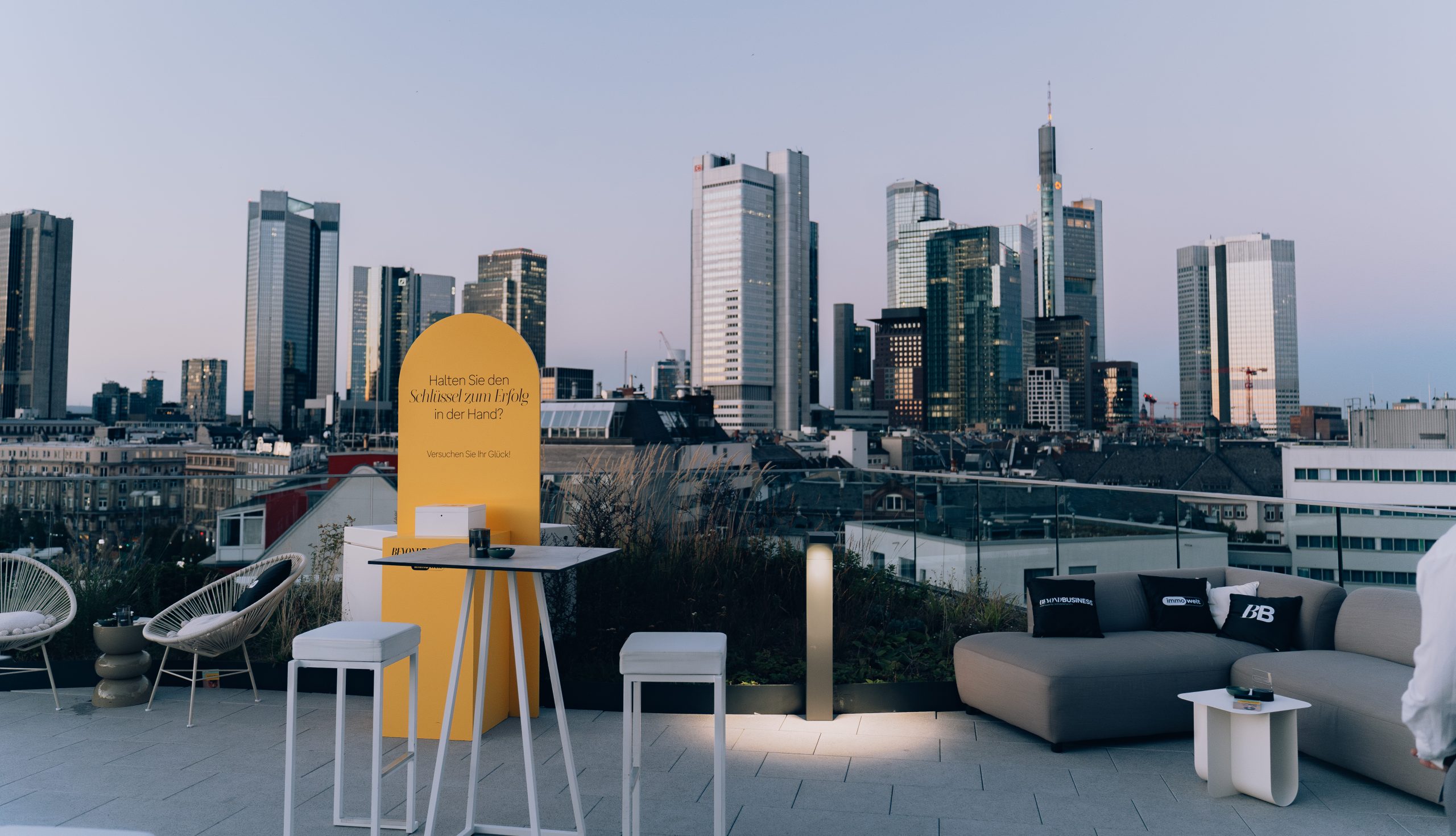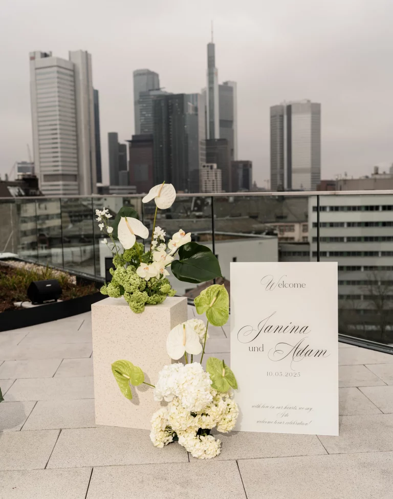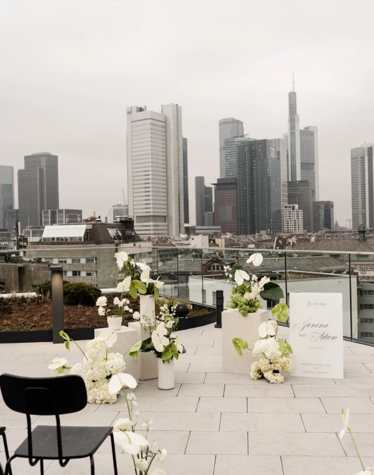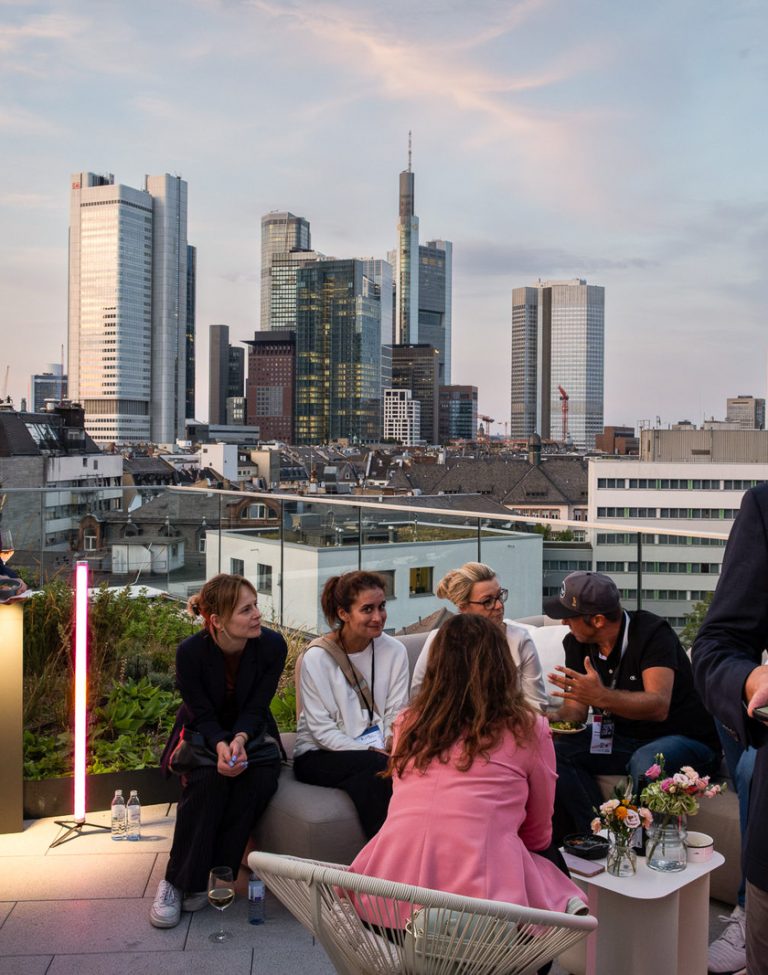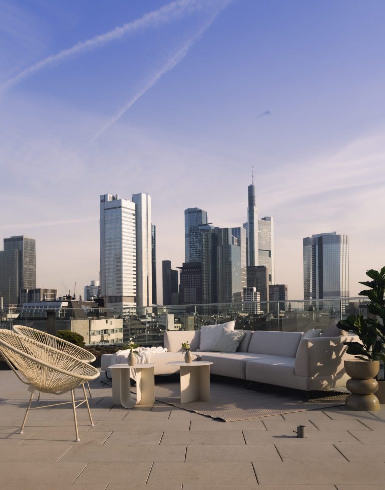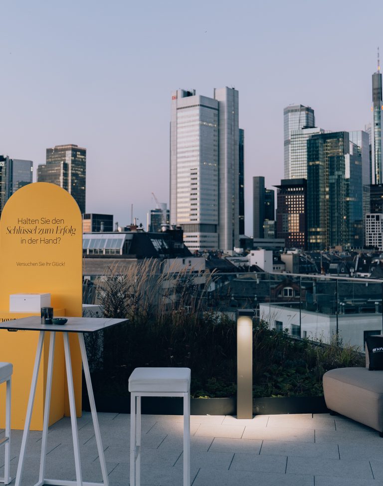 Unsere Eventlocation in Frankfurt verfügt über einen modernen, vollausgestatteten exklusiv nutzbaren Raum, mit großartigem Blick auf die Skyline Frankfurts. Durch den Flur, welcher ebenfalls nur exklusiv genutzt wird, kommt man auf unsere 100qm große Dachterrasse, welche euch ebenfalls zur Verfügung steht.