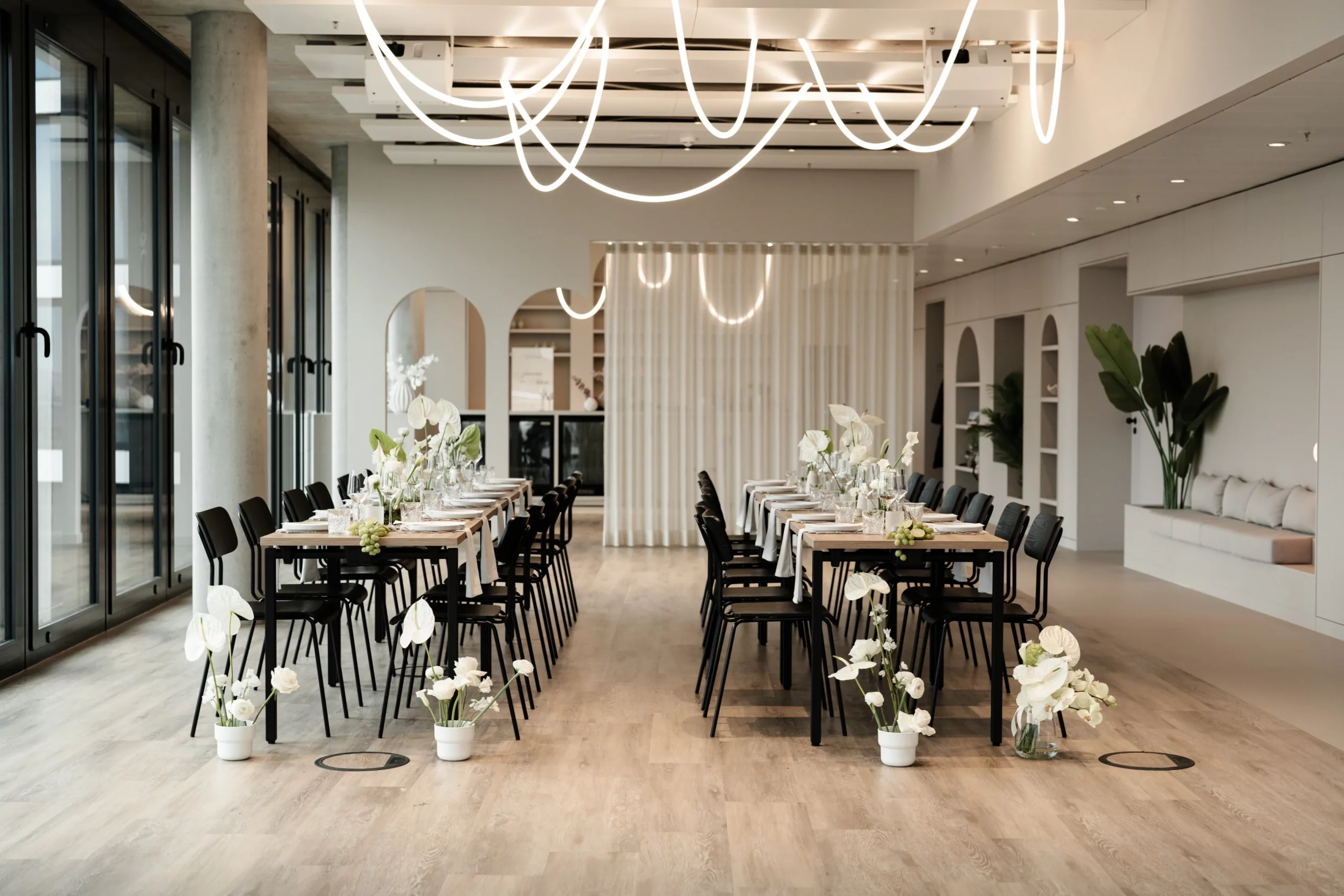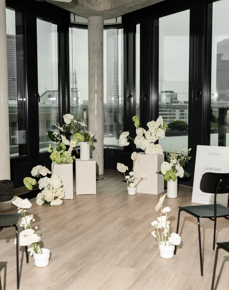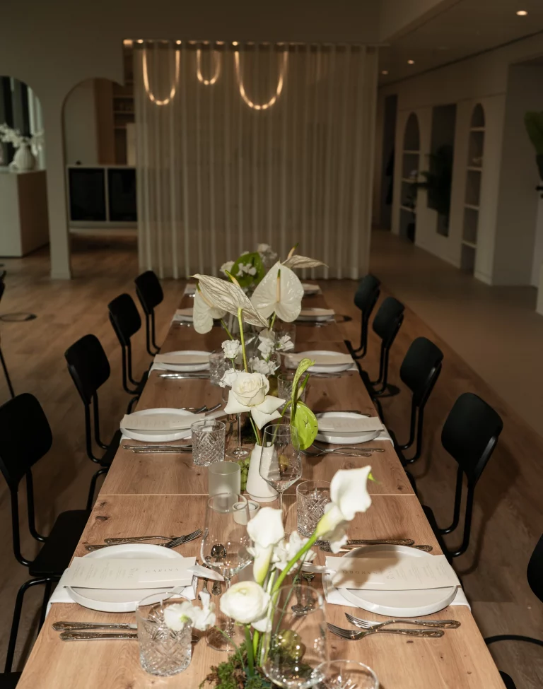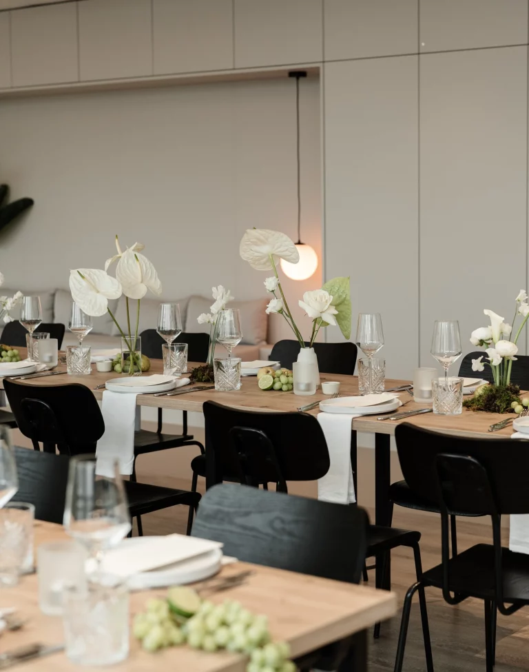Das Food-&-Beverage-Konzept wird von einem unserer Cateringpartner bereitgestellt. Gemeinsam könnt ihr euer perfektes Menü und passende Getränke auswählen – abgestimmt auf euren Stil und eure Gäste. So entsteht ein stimmiges Gesamtkonzept, das kulinarisch genau zu eurem Event passt.