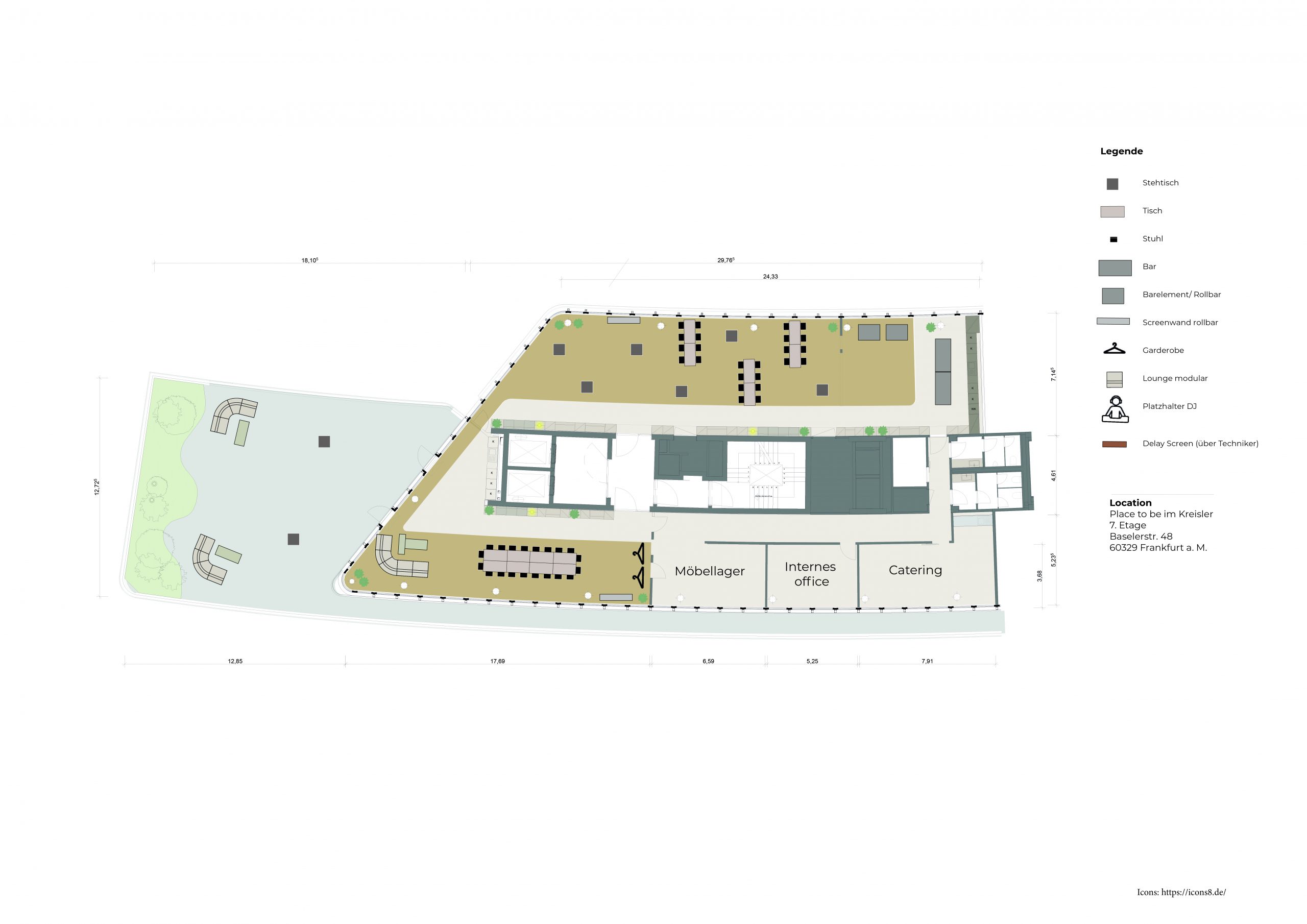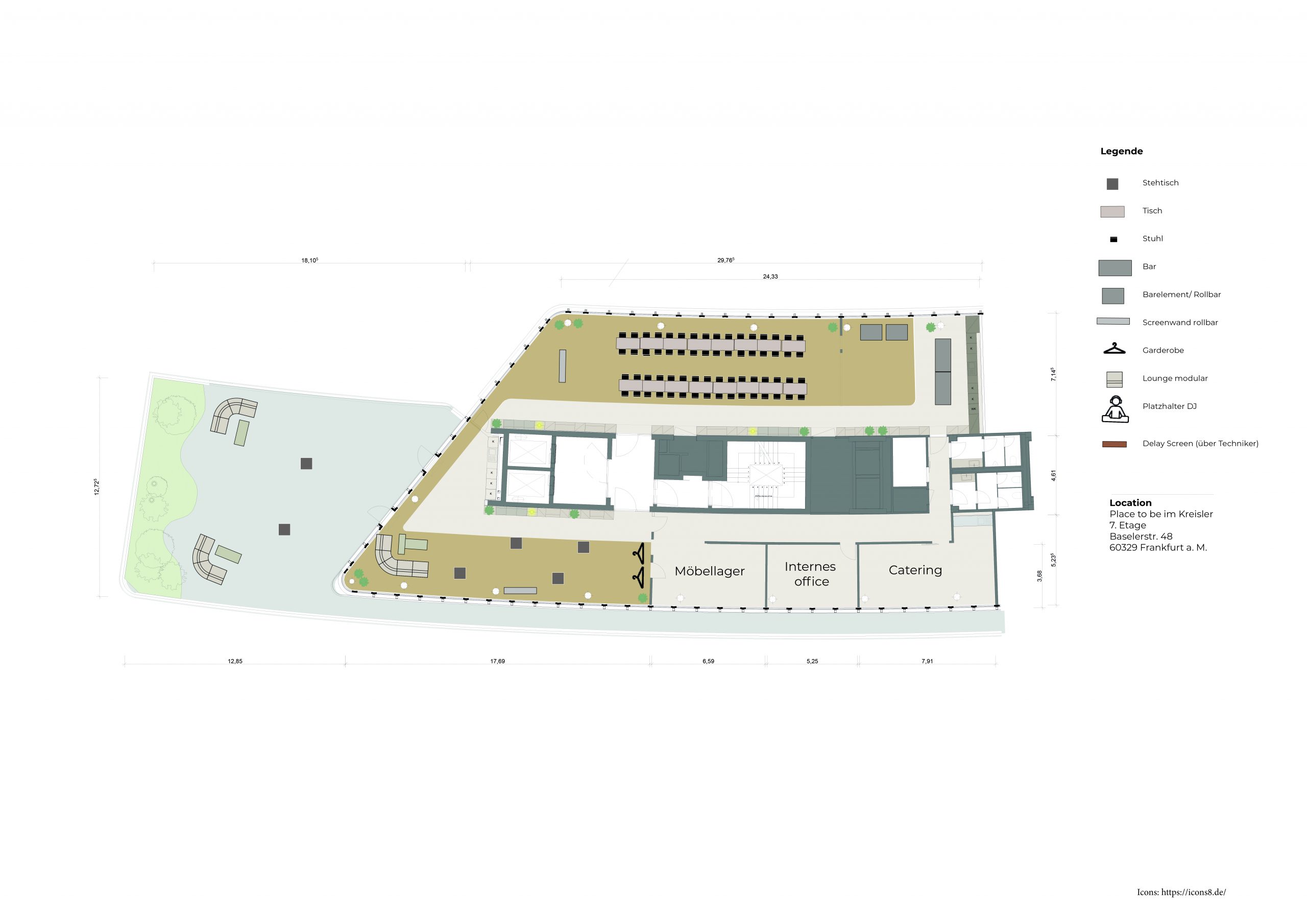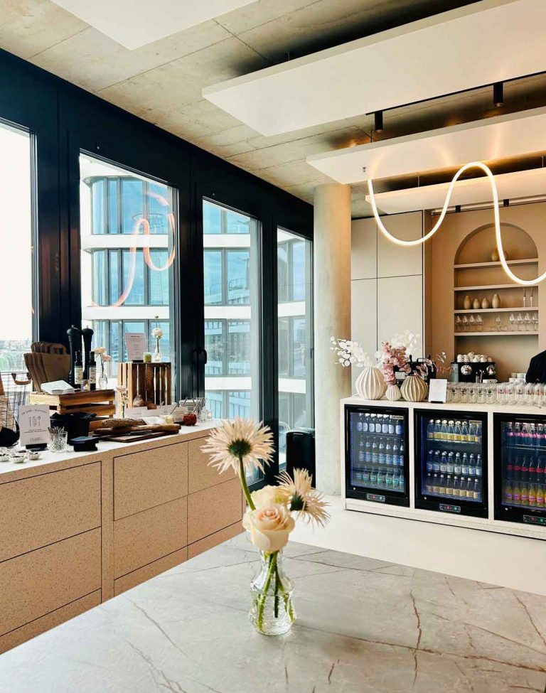 Das Food & Beverage Konzept kann von einem unserer Cateringpartner bereitgestellt werden. Gemeinsam könnt ihr euer perfektes Menü und passende Getränke auswählen. Zudem ist es auch möglich, einen eigenen Cateringpartner zu wählen. Dies muss jedoch mit uns abgestimmt werden und die Betreuung durch Service und einen Serviceleiter muss sichergestellt sein. Eine Buchung ohne Betreuung ist leider nicht möglich.