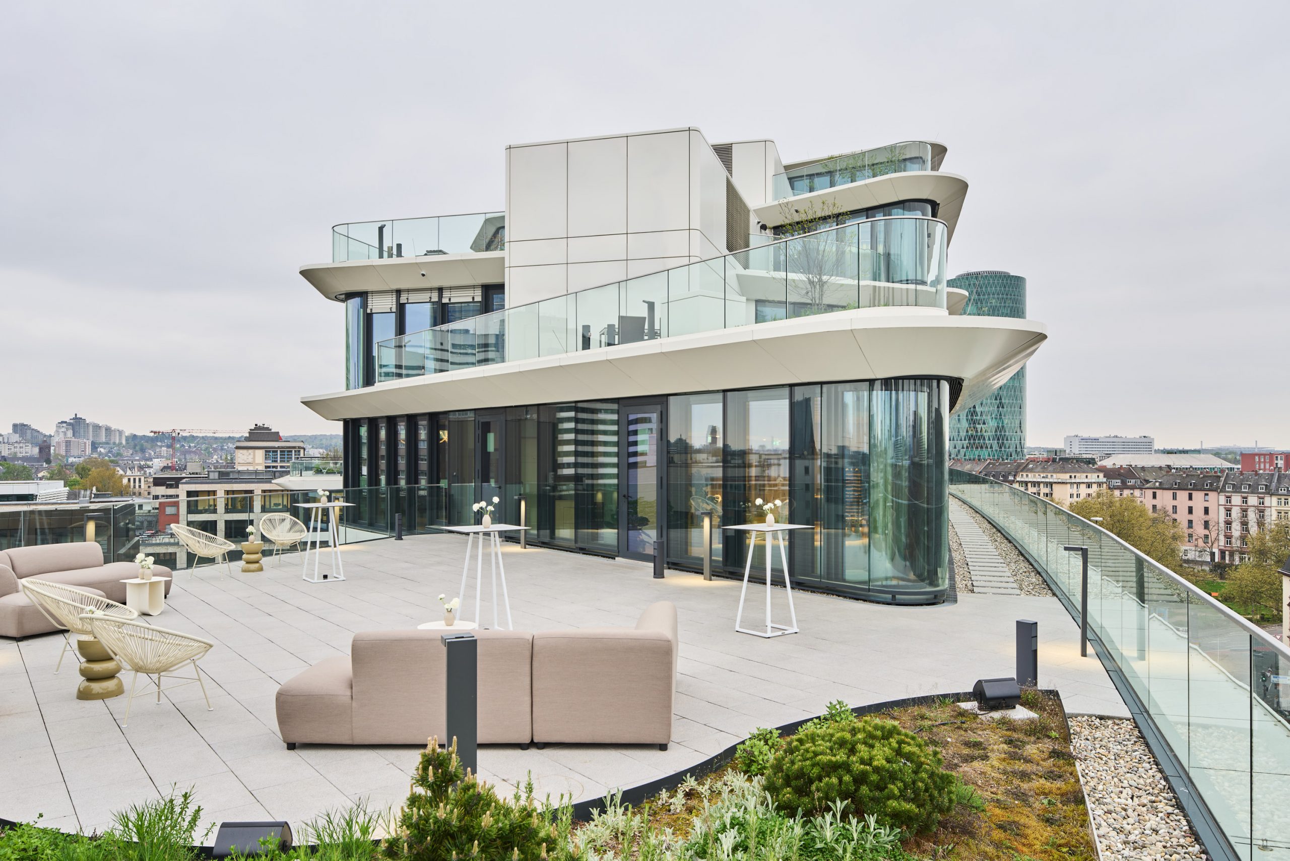 Unsere Eventlocation in Frankfurt verfügt über einen modernen, vollausgestatteten exklusiv nutzbaren Raum, mit großartigem Blick auf die Skyline Frankfurts. Durch den Flur, welcher ebenfalls nur exklusiv genutzt wird, kommt man auf unsere 100qm große Dachterrasse, welche euch ebenfalls zur Verfügung steht.