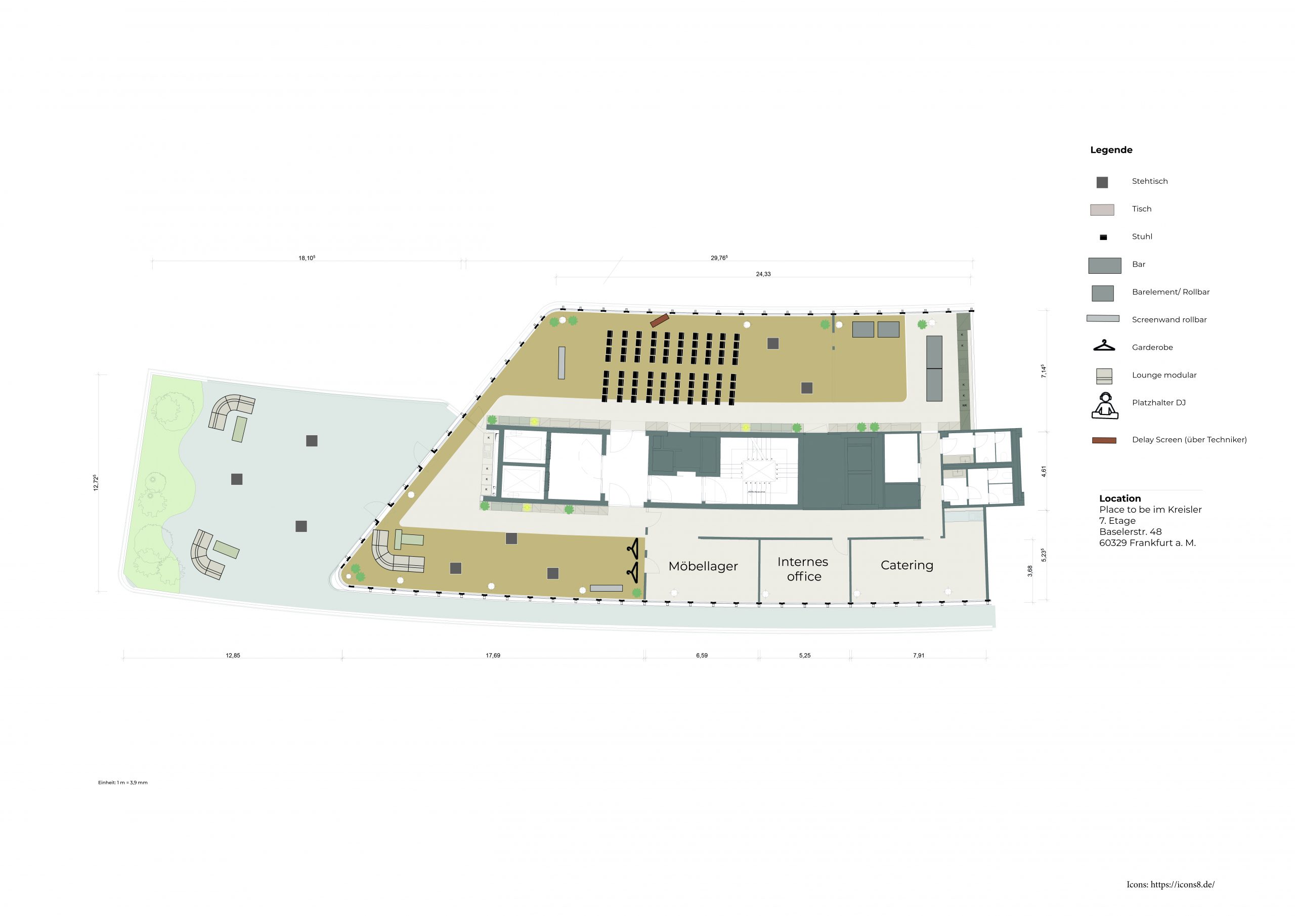 Das Food & Beverage Konzept kann von einem unserer Cateringpartner bereitgestellt werden. Gemeinsam könnt ihr euer perfektes Menü und passende Getränke auswählen. Zudem ist es auch möglich, einen eigenen Cateringpartner zu wählen. Dies muss jedoch mit uns abgestimmt werden und die Betreuung durch Service und einen Serviceleiter muss sichergestellt sein. Eine Buchung ohne Betreuung ist leider nicht möglich.