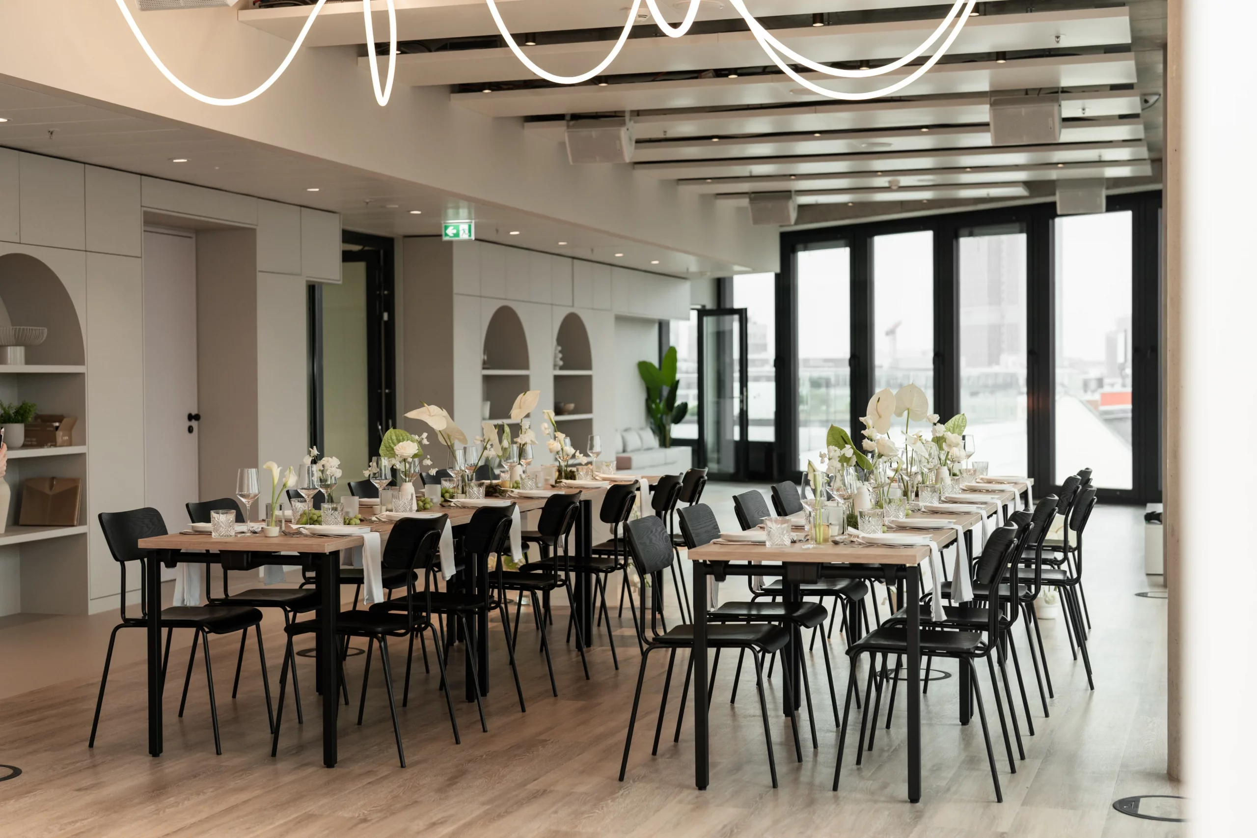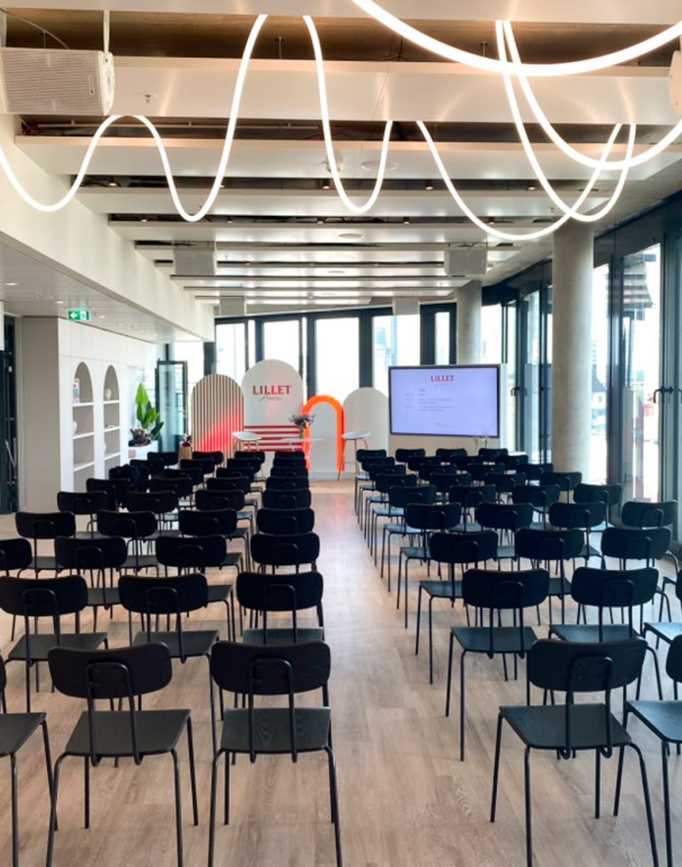 Inklusive sind 150 Stühle, Tische für bis zu 120 Personen (70 × 140 cm), 2 Flipcharts, 2 Pinnwände, Dolby Surround, 2 Funkmikrofone, Mischpult, 2 LED-Screens, WLAN, Loungemöbel und Dekoration.
